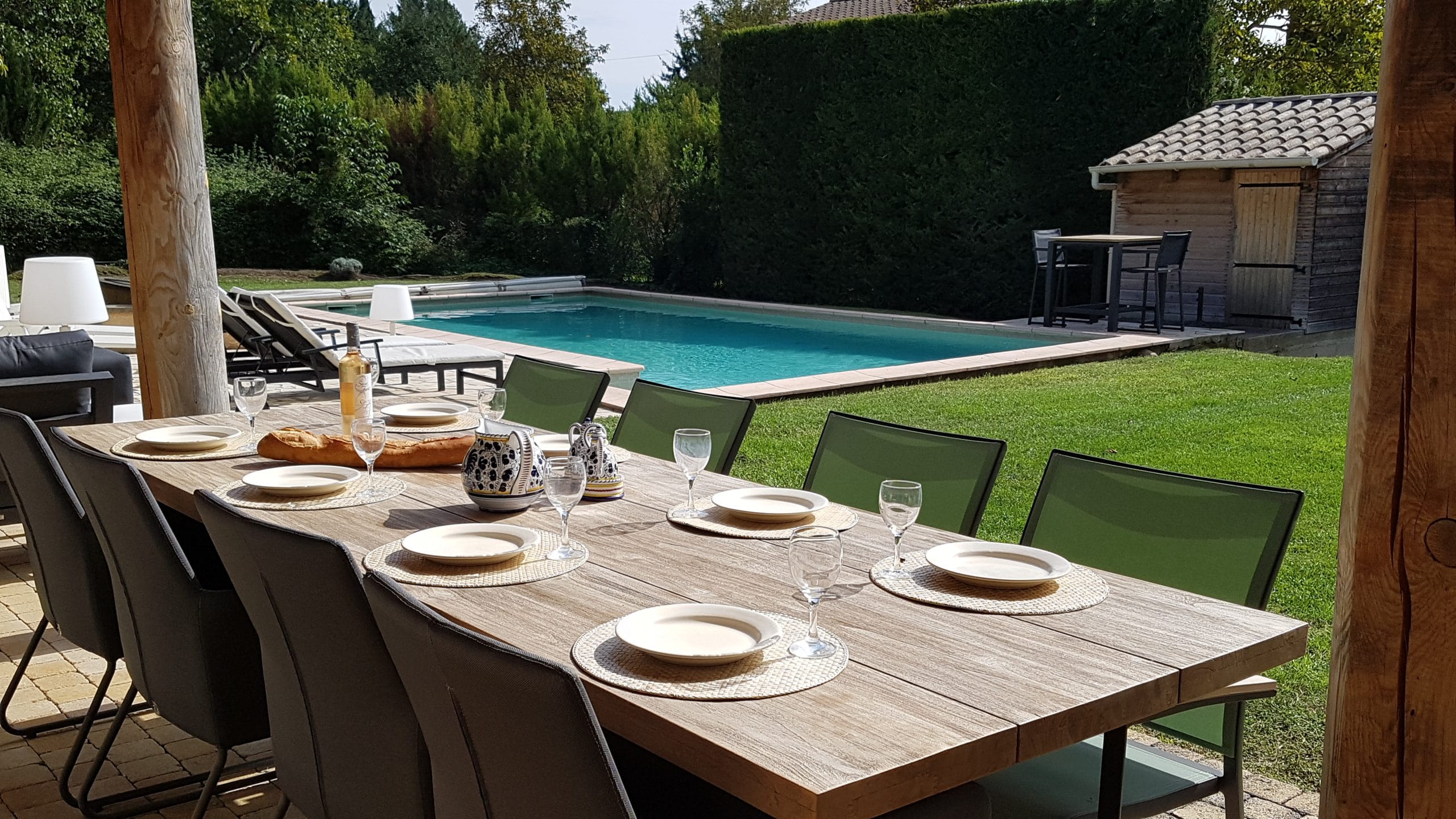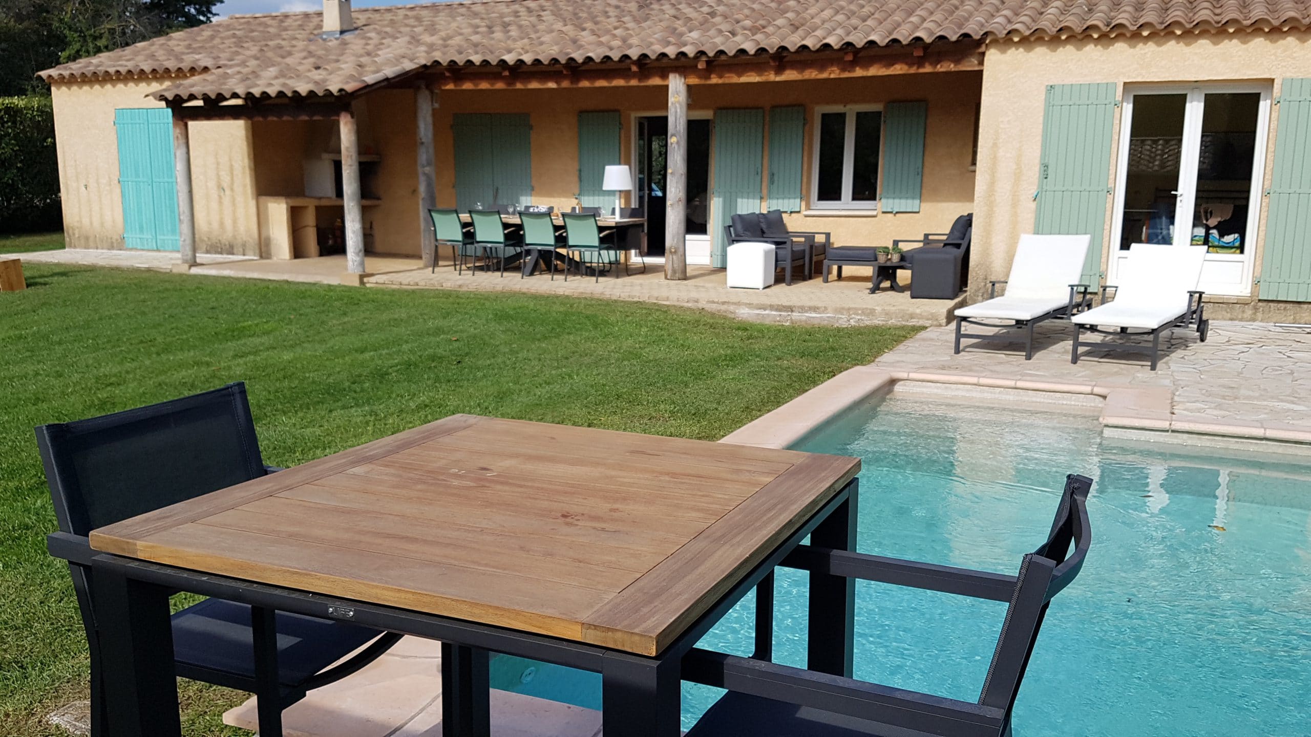 Ga naar interieurEen heerlijk huis, maar een minstens net zo lekker 'buiten'. Vanuit de woonkamer zijn er twee openslaande deuren naar het overdekte terras. Heerlijk, niet alleen tegen die zeldzame regenbui.