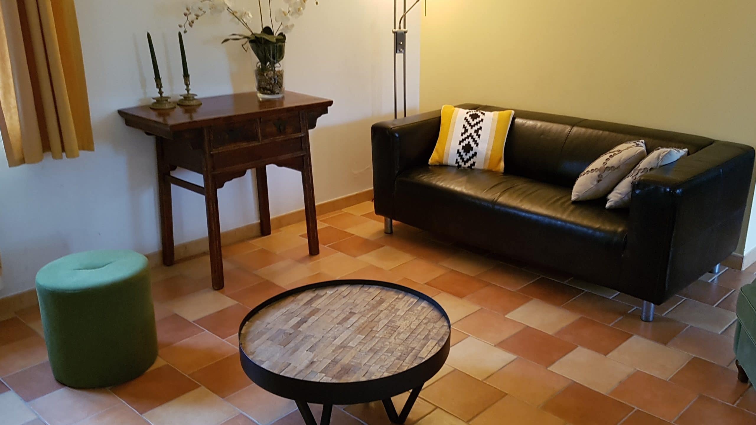 Een heerlijk ruim huis, met een woonkamer met open haard, met 4 slaapkamers en 2 badkamers, zo’ n 120 m2 woonoppervlak. En dat is exclusief de (gedeeltelijk overdekte) terrassen.